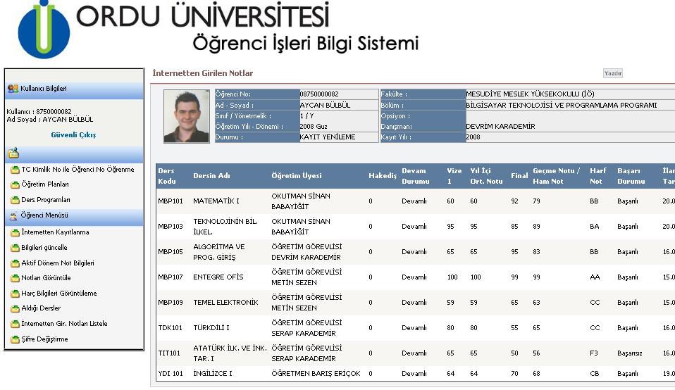 Evet arkadaşlar sonunda çileli finaller bitti ve notlar internete girildi buyruun benim notlarım bakın.